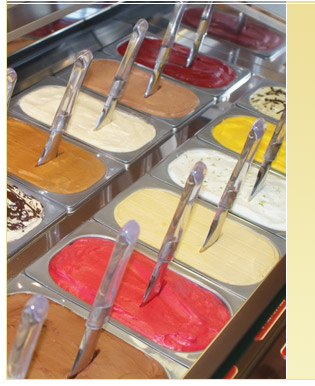 Our gelato flavors include: Vanilla, chocolate, pistachio,